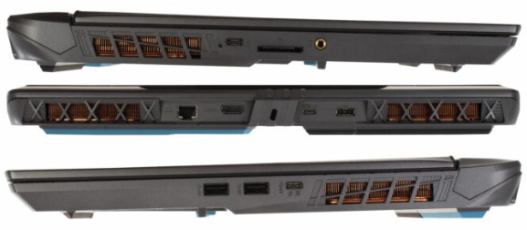 Hệ thống khe tản nhiệt được bố trí hợp lý ở xung quanh máy, giúp làm mát hiệu quả đồng thời tăng cường tính thẩm mỹ tổng thể.