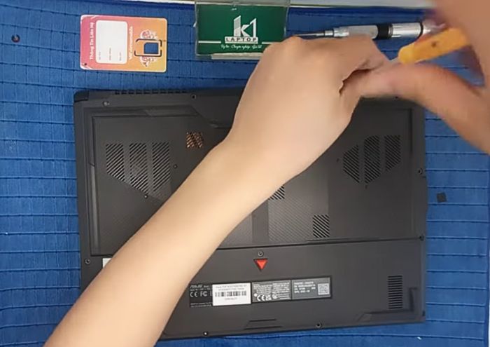 Bước 2: Mở nắp laptop: Sử dụng tua vít để mở nắp dưới của laptop. Tham khảo hướng dẫn của nhà sản xuất để biết cách mở nắp đúng cách. Nên làm việc ở nơi có đủ ánh sáng và sử dụng thảm chống tĩnh điện để tránh gây hại cho linh kiện và tạo cảm giác bớt gây va chạm trên mặt A khi thay Ram..