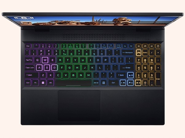 Hệ thống đèn LED tuỳ chỉnh RGB 4 vùng, tạo nên một hiệu ứng ánh sáng độc đáo và hấp dẫn. Bạn có thể tùy chỉnh màu sắc của các phím thông qua phần mềm Nitro Sense chuyên dụng. Từ những sắc màu tươi sáng cho đến ánh sáng nhấp nháy đa dạng, bạn có thể tạo ra không gian ánh sáng phong cách riêng, thể hiện cá nhân và tinh thần trong quá trình chơi game.