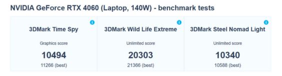 NVIDIA® GeForce® RTX™ 4060 Laptop GPU Up to 140 W |