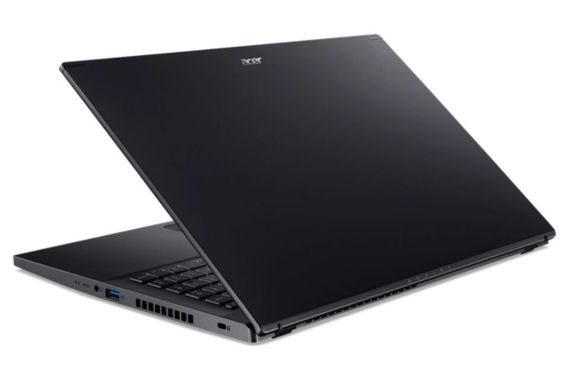 Bề mặt ngoài được thiết kế đơn giản nhưng đầy cuốn hút với lớp sơn phủ màu đen nhám, tạo cảm giác sang trọng và cứng cáp. Logo Acer nhỏ gọn được đặt tinh tế ở góc trên, đủ để nhận diện thương hiệu mà không gây rối mắt.
