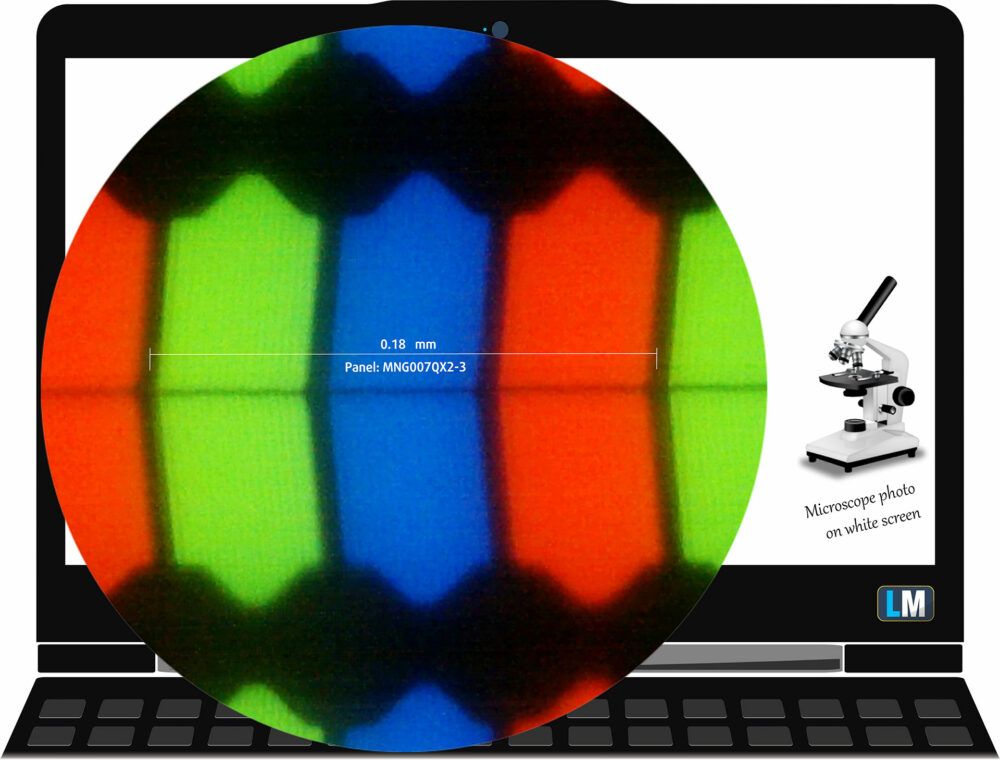 Màn hình 1200p 180 Hz của Acer Nitro V 16 AI (ANV16-42) dưới kính hiển vi