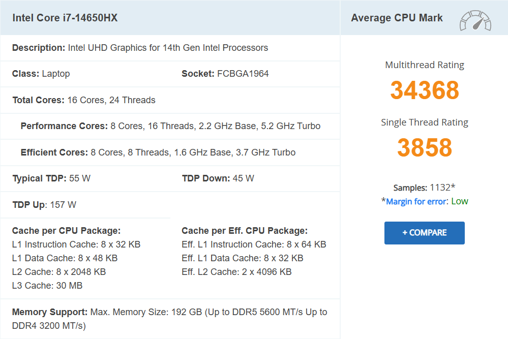 Hiệu năng CPU – Core i7-14650HX cho tác vụ nặng liên tục