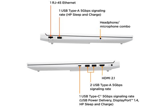 - 1 cổng USB Type-A với tốc độ tín hiệu 5Gbps hỗ trợ công nghệ HP Sleep and Charge.