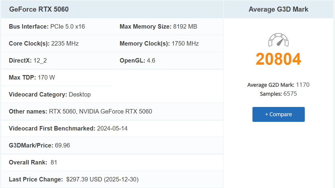 Test GPU GeForce RTX 5060