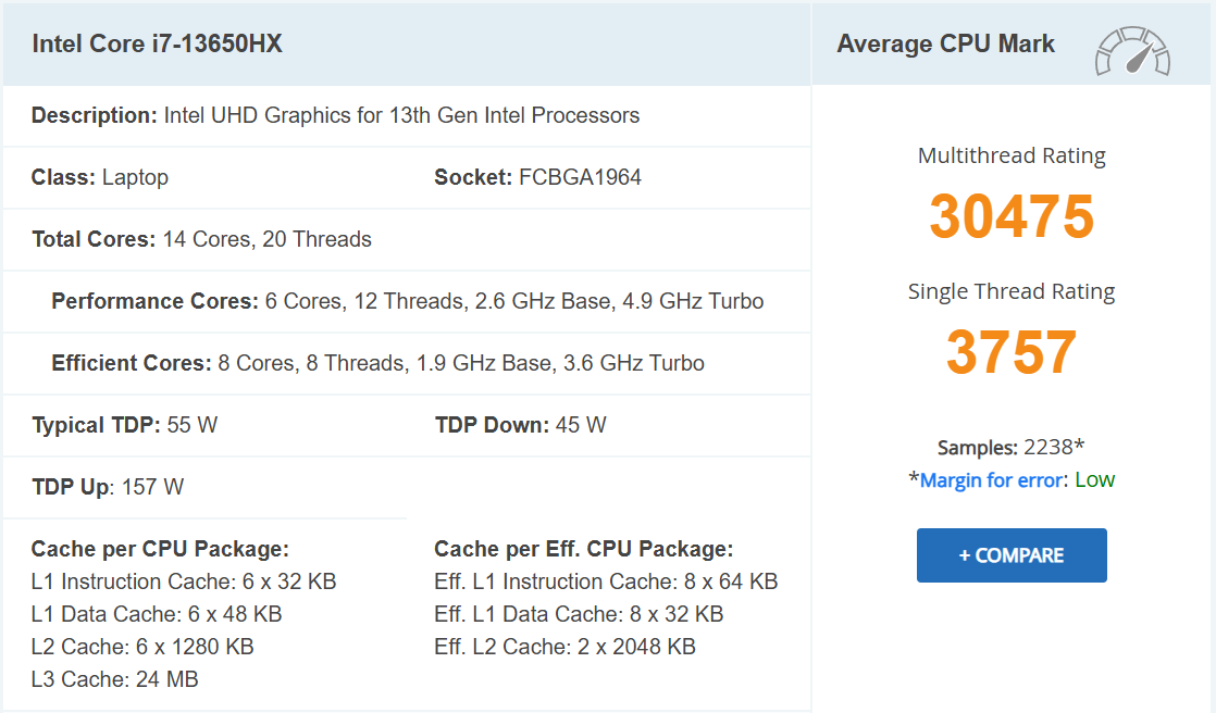 2. CPU i7-13650HX có phù hợp công việc nặng không?