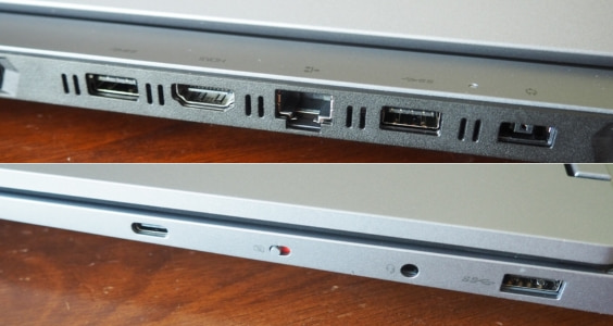 Ở cạnh trái, máy trang bị cổng USB-C (USB 3.2 Gen 2) tốc độ 10Gbps, hỗ trợ sạc nhanh Power Delivery 65–100W và DisplayPort 1.4, cho phép xuất hình ảnh ra màn hình ngoài độ phân giải cao. Phía sau là cụm 3 cổng USB-A (USB 3.2 Gen 1, 5Gbps), HDMI 2.1 hỗ trợ xuất tín hiệu 8K/60Hz, cùng cổng Ethernet RJ-45 đảm bảo đường truyền ổn định khi chơi game online hay stream.