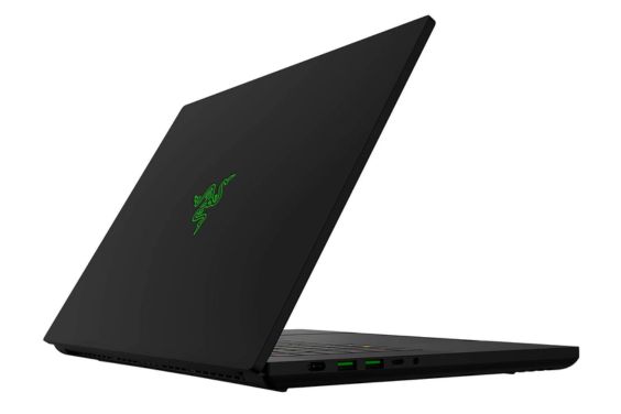 Mặt sau của máy vẫn là logo rắn ba đầu màu xanh lá đặc trưng của Razer, nổi bật và tạo sự phá cách trên nền đen của lớp vỏ. Các góc cạnh máy được thiết kế sắc nét, kết hợp cùng bản lề chắc chắn, giúp tăng độ bền và mang lại trải nghiệm thoải mái khi sử dụng.