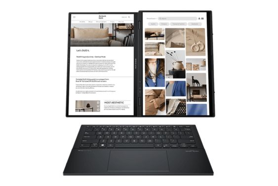 Ngoài ra, bàn phím rời đi kèm để người dùng tự do bố trí không gian làm việc và điều chỉnh linh hoạt giữa các chế độ sử dụng. Khi đặt bàn phím lên màn hình phụ, máy tự động chuyển về giao diện laptop truyền thống với Touchpad ảo hiển thị ngay trên màn hình. Với trọng lượng chỉ khoảng 1.34kg, đây là dòng laptop có 2 màn hình di động, mỏng nhẹ lý tưởng cho người làm việc linh hoạt.