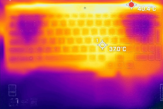 Hệ thống tản nhiệt sử dụng hai quạt lớn cùng nhiều khe hút/xả nhiệt, hoạt động ổn định và hiệu quả. Dù bạn đang stream, chơi game hay làm việc nặng liên tục, máy vẫn duy trì được nhiệt độ an toàn và không gây ồn lớn.